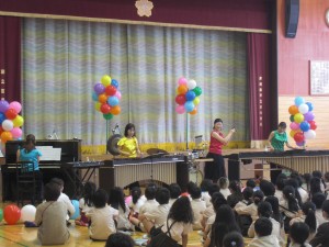 芸術鑑賞会では、cachecache(カシュカシュ)の皆さんをお招きして、素敵な音楽を聴かせてもらいました。