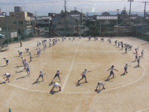 運動会まであと4日です。太鼓や笛の音色に合わせて、中学年のソーランも引き締まってきました。