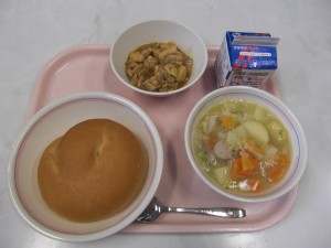 牛乳 うずまきパン 鶏肉のみかんジュース煮 野菜の洋風煮