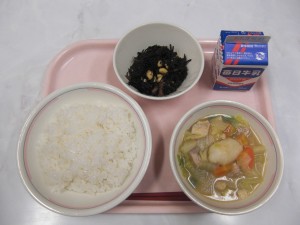 牛乳 減量ごはん きりたんぽ鍋 ひじきと大豆の炒め煮