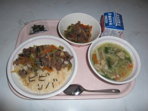 今日のひとり言 「ビビソバ」ではなくて 「ビビンバ」を 刻みのりで作ったつもりです 「ビビンバ」は給食で食べるのが 一番美味しいと 思っています