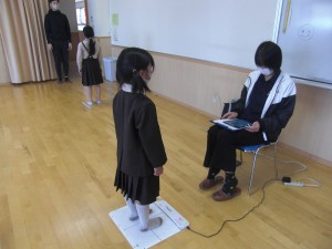 視力検査とセットで、ポーズン検査をしています。足の裏や立ち方の様子を測定して、正しい姿勢を身につけていきます。