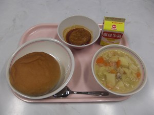 牛乳 丸型パン 煮込みハンバーグ 野菜の洋風煮