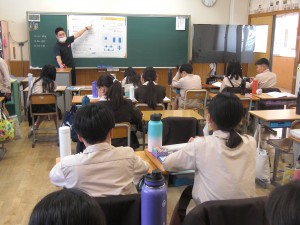(写真は6年の算数です。線対称・点対象の図形について学んでいます。)