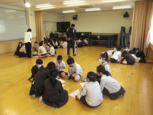 春の遠足を明後日に控え、一緒に行動する3・4年生は、合同で班ごとに話し合いをしています。4年生がリーダーシップをとってくれています。