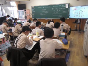 高学年は、週あたり2時間、外国語の授業があります。城内小学校から、外国語専科の先生が教えてに来てくださいます。