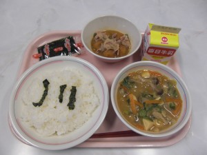 牛乳 ごはん 味付けのり 豚肉と丸天の煮物 豆腐のみそ汁