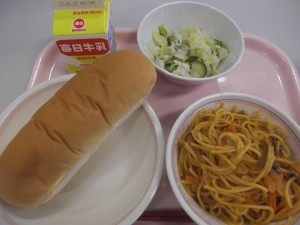 牛乳 コッペパン スパゲティトマトソース キャベツときゅうりのサラダ