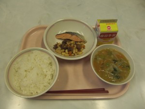 牛乳 ごはん 鮭の塩焼き 大和煮 みそ汁