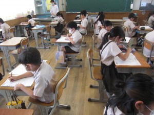 4月は5・6年生でしたが、今日は、岸和田市内すべての3・4年生が、学力調査に挑戦しています。はまっ子も、がんばれ!(写真は3年生です)