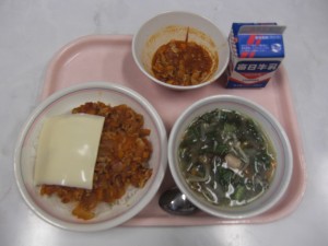 牛乳 ごはん タコライスの具 スライスチーズ もずくスープ