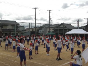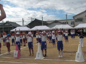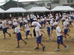 今年の運動会が無事に開かれました。スローガンは「はじめから 終わりまで 岸和田一の笑顔」です。