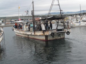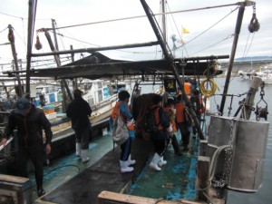 4隻の漁船に分かれて乗り込みます。