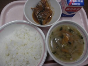 今日の給食は、牛乳・ごはん・さばのみそ煮・沢煮椀 でした。