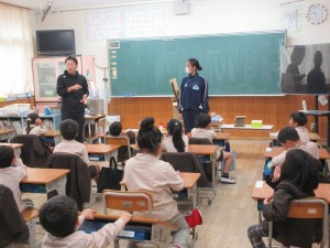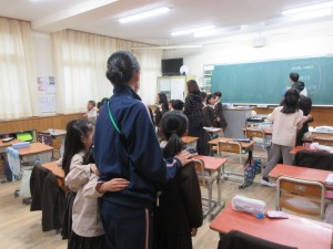 2年生の教室では、子どもたちにまじって体を動かしました。