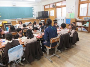 給食の時間も一緒で、子どもたちは大喜び。「おいしいね!」