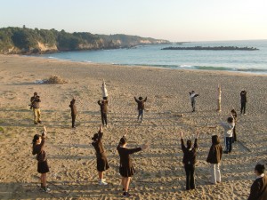 気持ちのいい砂浜に出て、担任のオリジナル体操で目を覚まします。