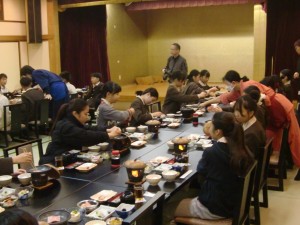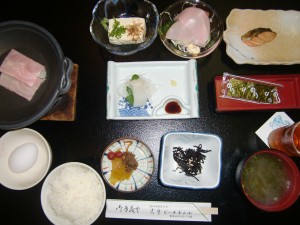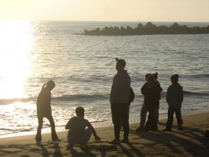 浜辺でお腹をすかせてから朝ごはんです。「いただきます!」
