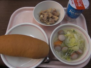 今日の給食は、飲むヨーグルト・コッペパン・フライドチキン・野菜の洋風煮 でした。