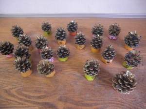 まつぼっくりで作ったかわいらしいツリーが飾られていました。