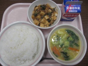 今日の給食は、牛乳・ごはん・マーボー豆腐・中華風コーンスープ でした。 2学期もごちそうさまでした!
