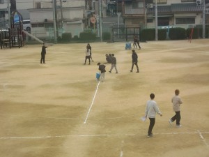 体育委員会は、運動場のトラックやドッジボールコートを整えてくれています。