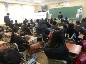 6年生は、岸城中学校へ、入学説明会を聞きに行きました。