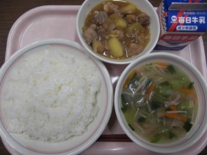 今日の給食は、ごはん・アドボ・春雨スープ でした。