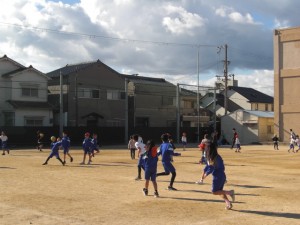 たくさんの子どもたちがおにごっこやドッジボールを楽しんでます。