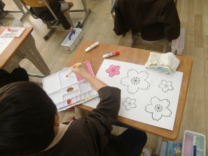 一年生には少し難しい「水彩絵の具」に挑戦しています。