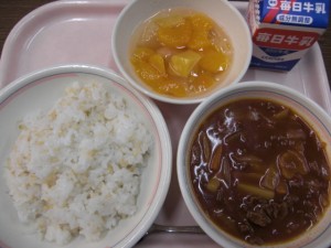今日の給食は、牛乳・玄米ごはん・ハヤシライスの具・フルーツミックスゼリー でした。