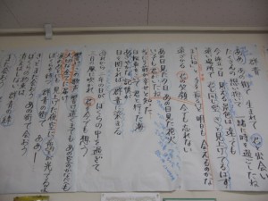 卒業式に歌う歌が掲示されています。歌詞に込められた思いを共有しています。