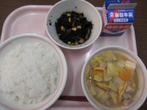 今日の給食は、牛乳・ごはん・ちゃんこ鍋・ひじきの炒め煮 でした。