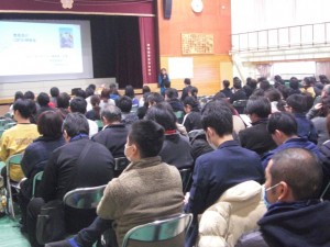 放課後に、岸城中学校区の幼・小・中の先生方が浜小学校に集まる研修会がありました。