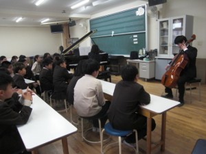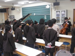 4年生は、チェロとピアノの生演奏を、間近で聴かせてもらいました!