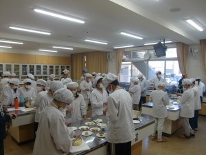 六年生は、最後の調理実習を楽しんでいます。