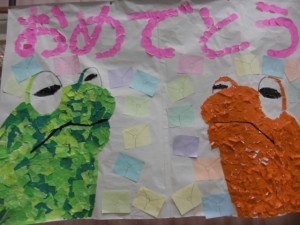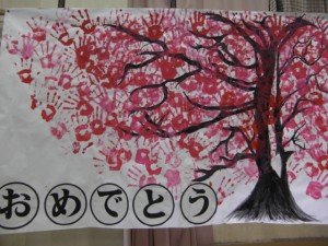 3月18日は卒業式です。5年生が在校生を代表して式に参加します。1~4年生はお休みなので、代わりにお祝いを飾ってくれました。