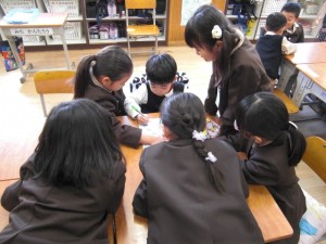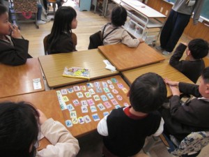 ひらがなで言葉を作ります。うまくできると拍手が起こりました。