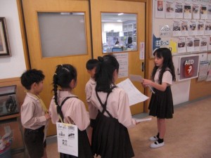 2年生は1年生を連れて、学校を案内します。