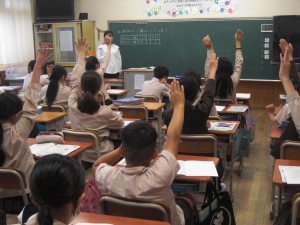 5年の算数は、関数や比例の基礎になるところを学んでいます。たくさん手が挙がってます!