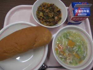 今日の給食は、牛乳・コッペパン・カレーソース・レタススープ でした。