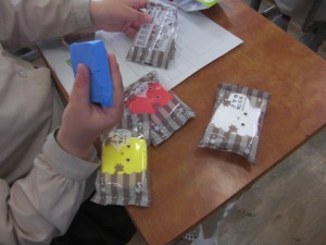 4色の紙粘土が用意されました。でも、混ぜれば色は無限に広がります。