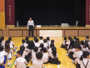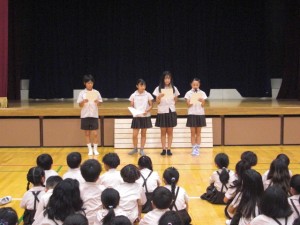 児童集会がありました。玄関の“すのこ”の使い方について話がありました。