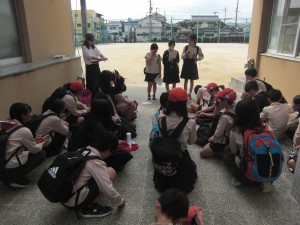 6年生は奈良に行きます。学校で出発式です。晴天でよかったね。