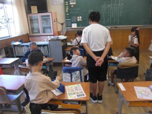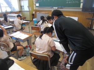 岸城中学校から、先生の仕事を体験するお兄さんが二人、来てくれました。