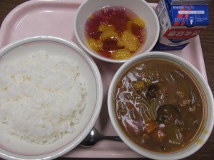 今日の給食は、牛乳・ごはん・夏野菜カレーライスの具・フルーツミックス でした。