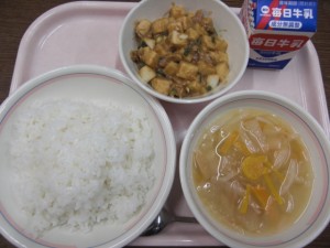 今日の給食は、牛乳・ごはん・マーボー豆腐・冬瓜スープ でした。