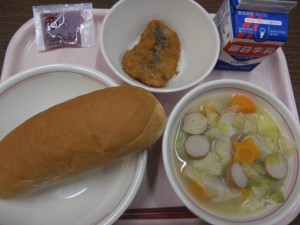 今日の給食は、牛乳・コッペパン・いちごジャム・ホキのポテト衣フライ・野菜の洋風煮 でした。