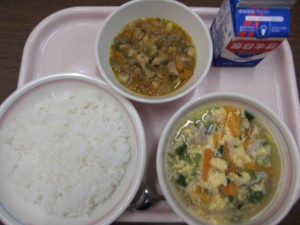今日の給食は、牛乳・ごはん・ガパオライスの具・卵スープ でした。