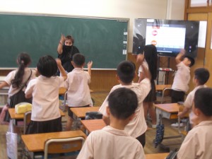 2学期も英語のアリス先生が来てくださいました。2年生もノリノリです。「Rock, scissors, paper, one, two, three !」